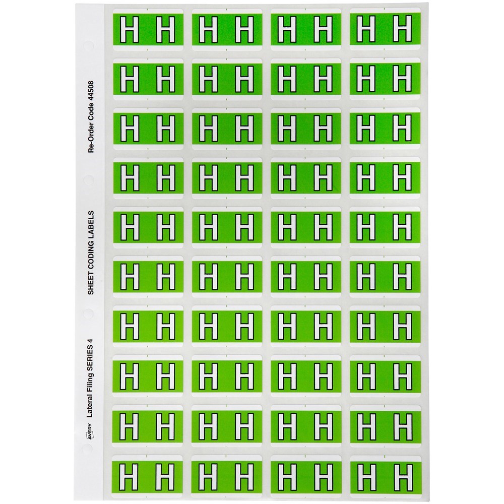 Avery Alphabet Coding Label H Side Tab 25x42mm Light Green Pack Of 240