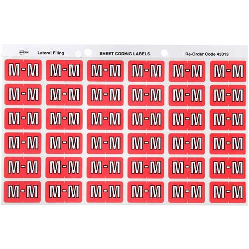 Avery Alphabet Coding Label M Side Tab 25x38mm Pink Pack Of 180