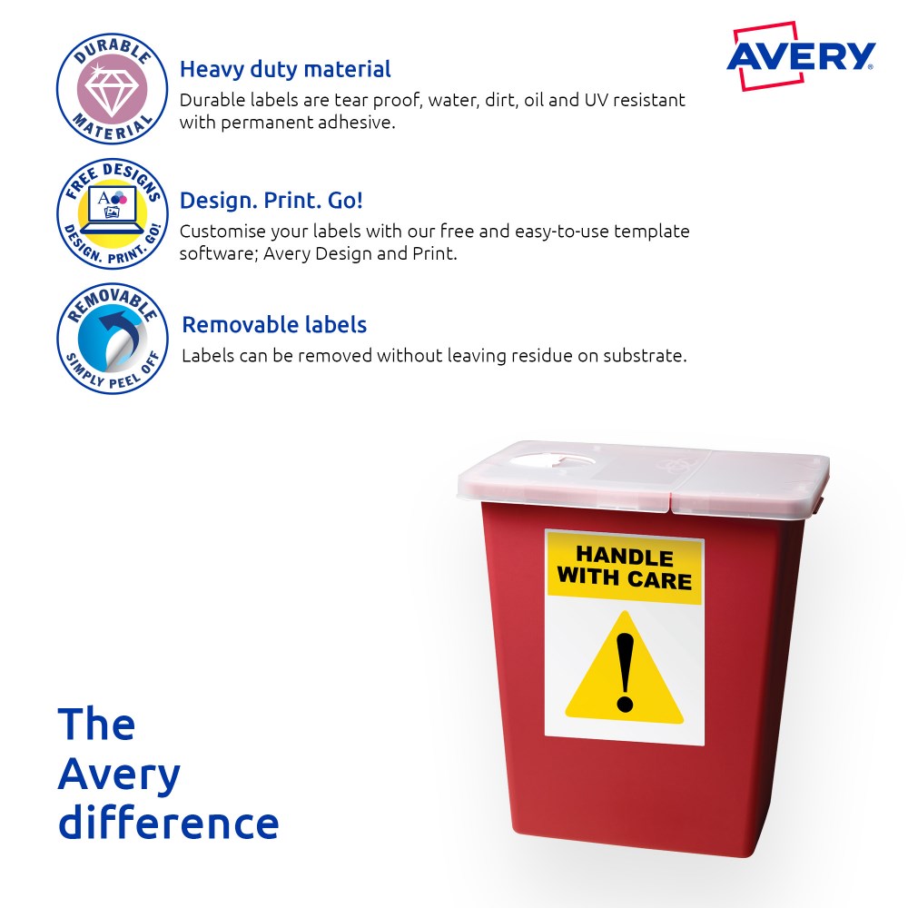 • Customise your labels with Avery Design and Print, available at averyproducts.com.au/print.