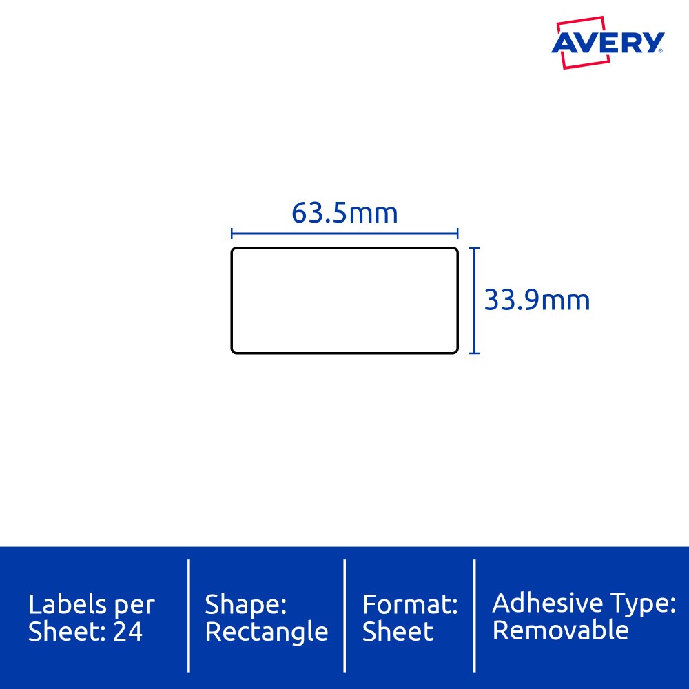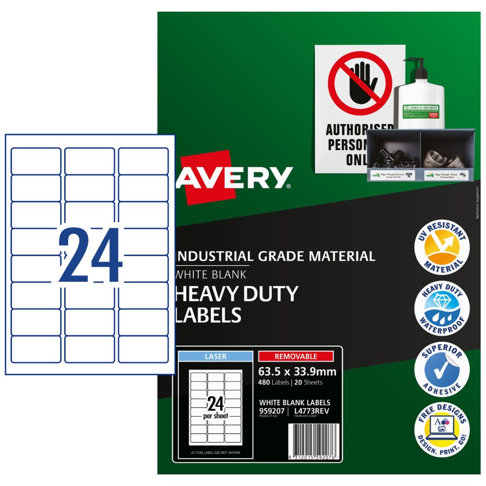 Avery Identification Removable Heavy Duty Laser White L4773 63.5x33.9mm 24UP 480 Labels
