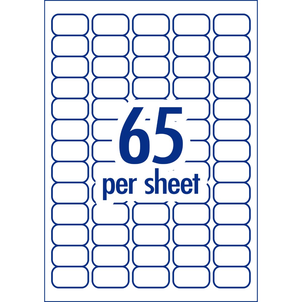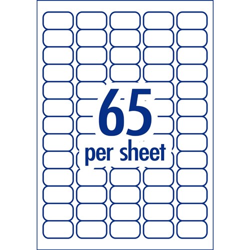 • Size: 38.1 x 21.2mm, 6500 labels, 100 sheets. 65 labels per sheet (65UP).