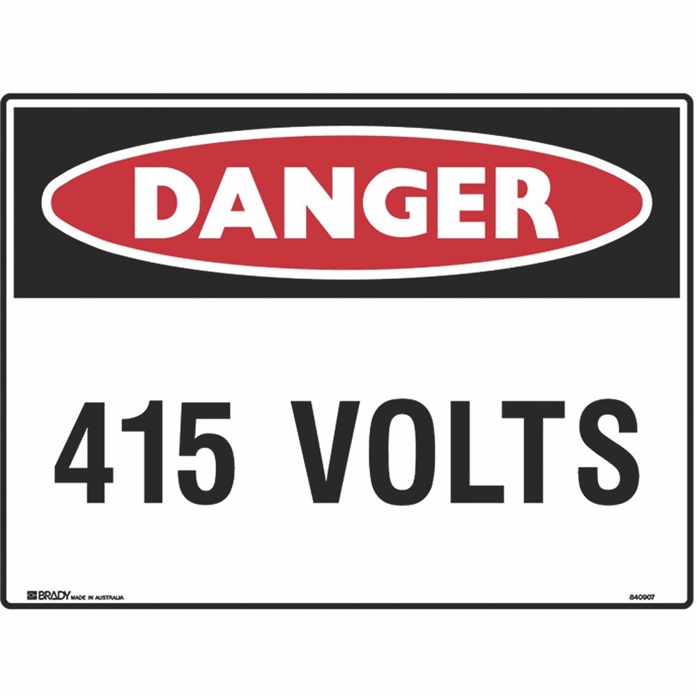 Brady Danger Sign 415 Volts 600W x 450mmH Metal White/Red/Black