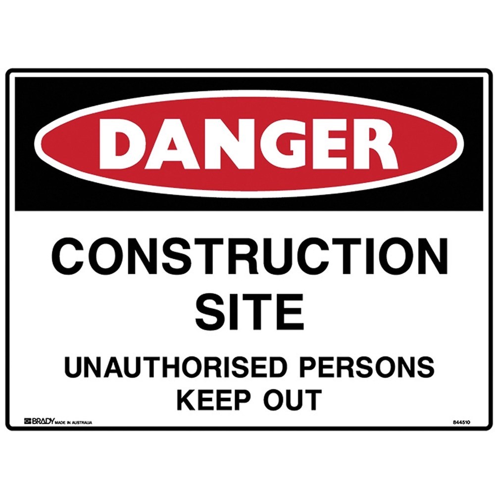 Brady Danger Sign Construction Site Unauthorised Persons Keep Out 600Wx450mmH Polypropylene