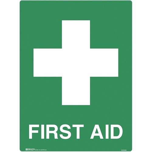 Brady Emergency Sign First Aid 450W x 600mmH Metal White/Green