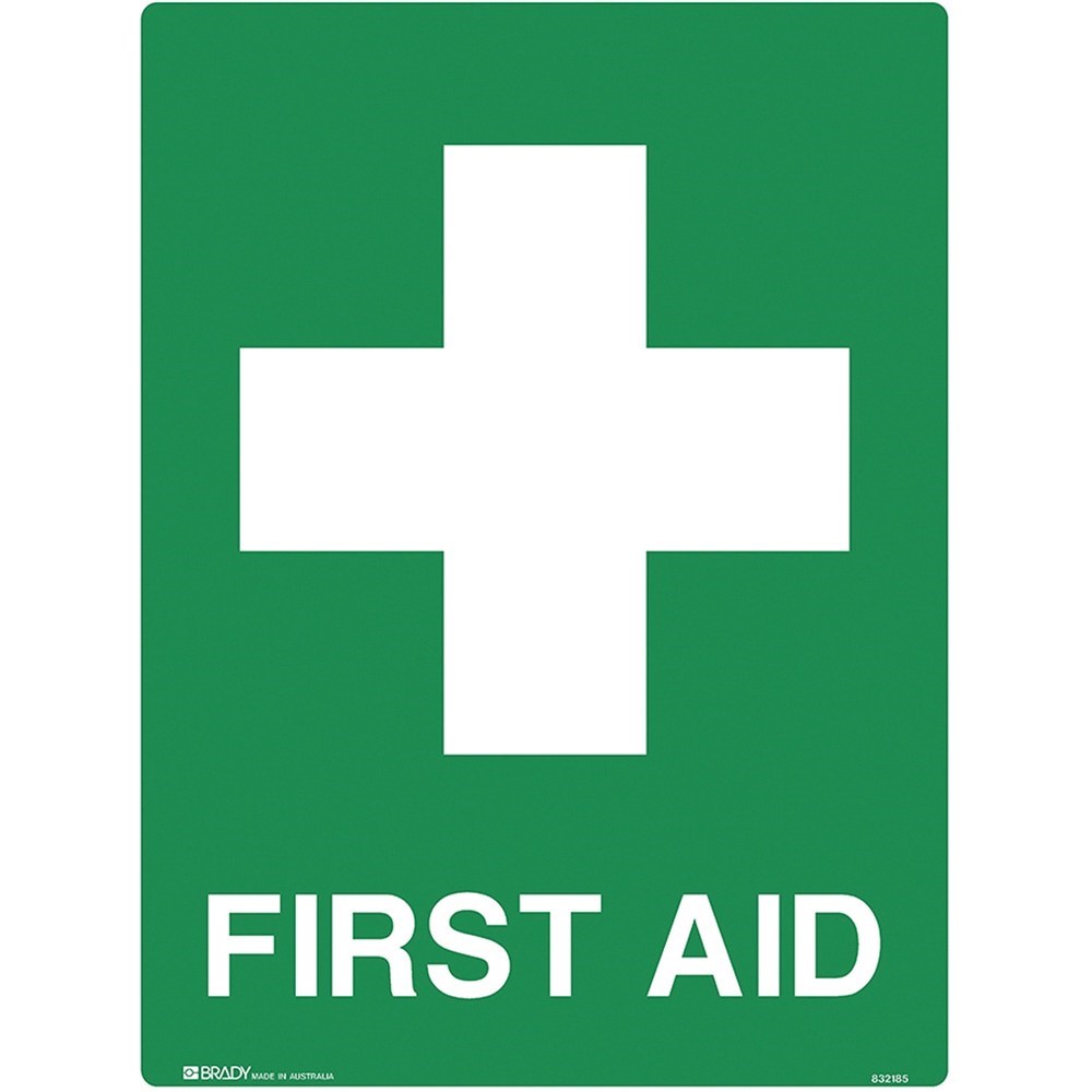 Brady Emergency Sign First Aid 450W x 600mmH Polypropylene White/Green
