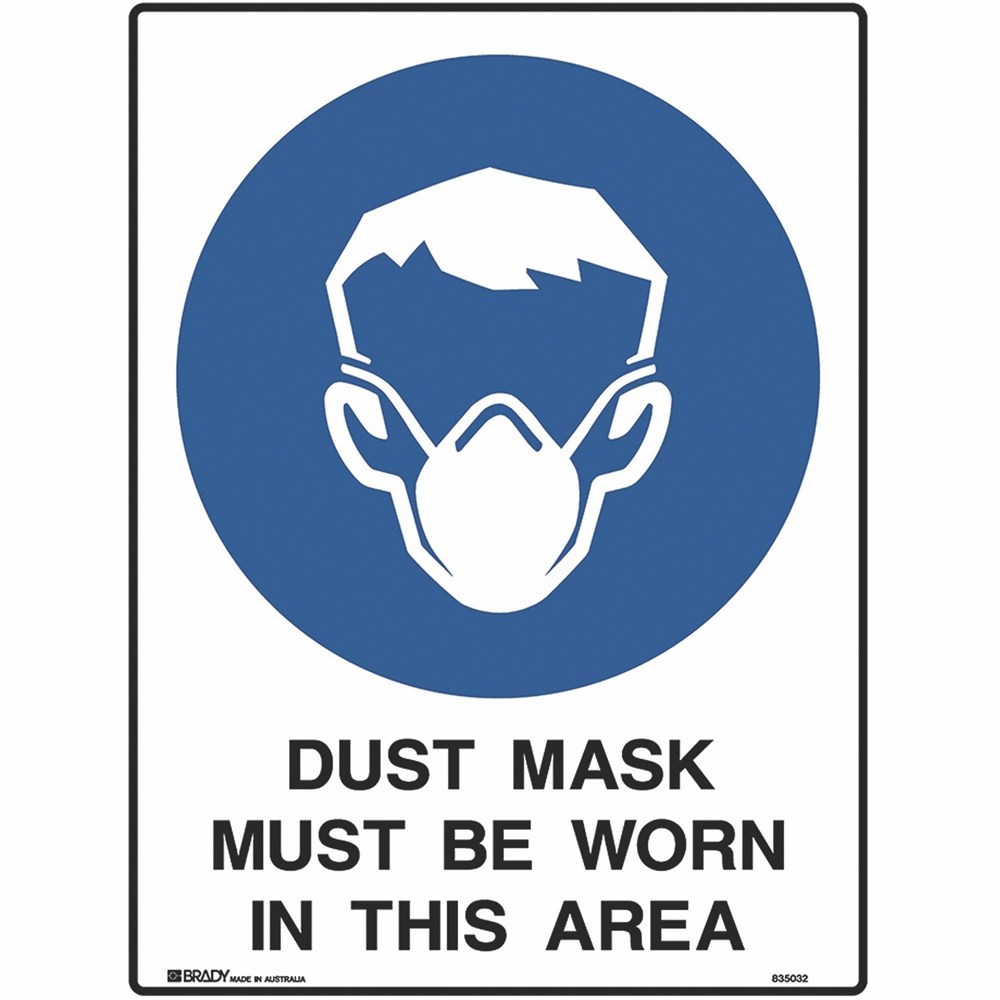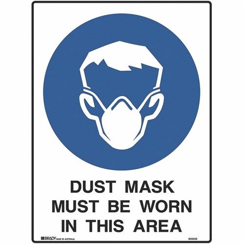 Brady Mandatory Sign Dust Mask Must Be Worn 450W x 600mmH Metal White/Blue