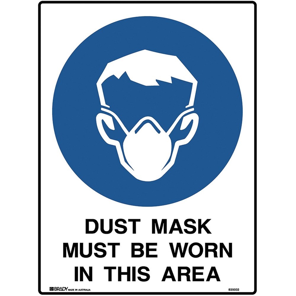 Brady Mandatory Sign Dust Mask Must Be Worn 450W x 600mmH Polypropylene White/Blue