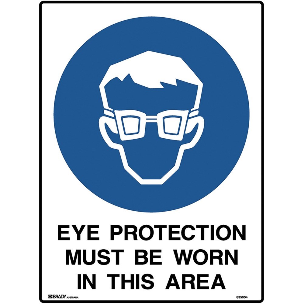 Brady Mandatory Sign Eye Protection Must Be Worn 450W x 600mmH Poly White/Blue