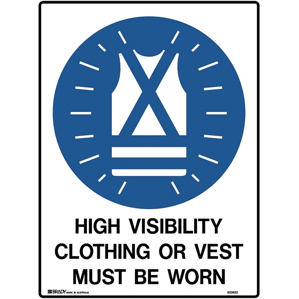 Brady Mandatory Sign High Vis Clothing Must Be Worn 450W x 600mmH Poly White/Blue