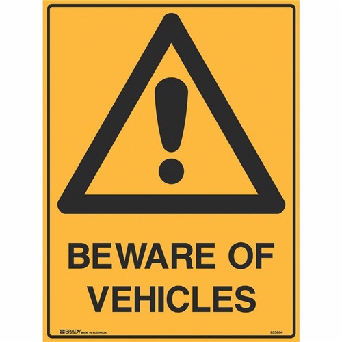 Brady Warning Sign Beware Of Vehicles 450W x 600mmH Metal Yellow/Black