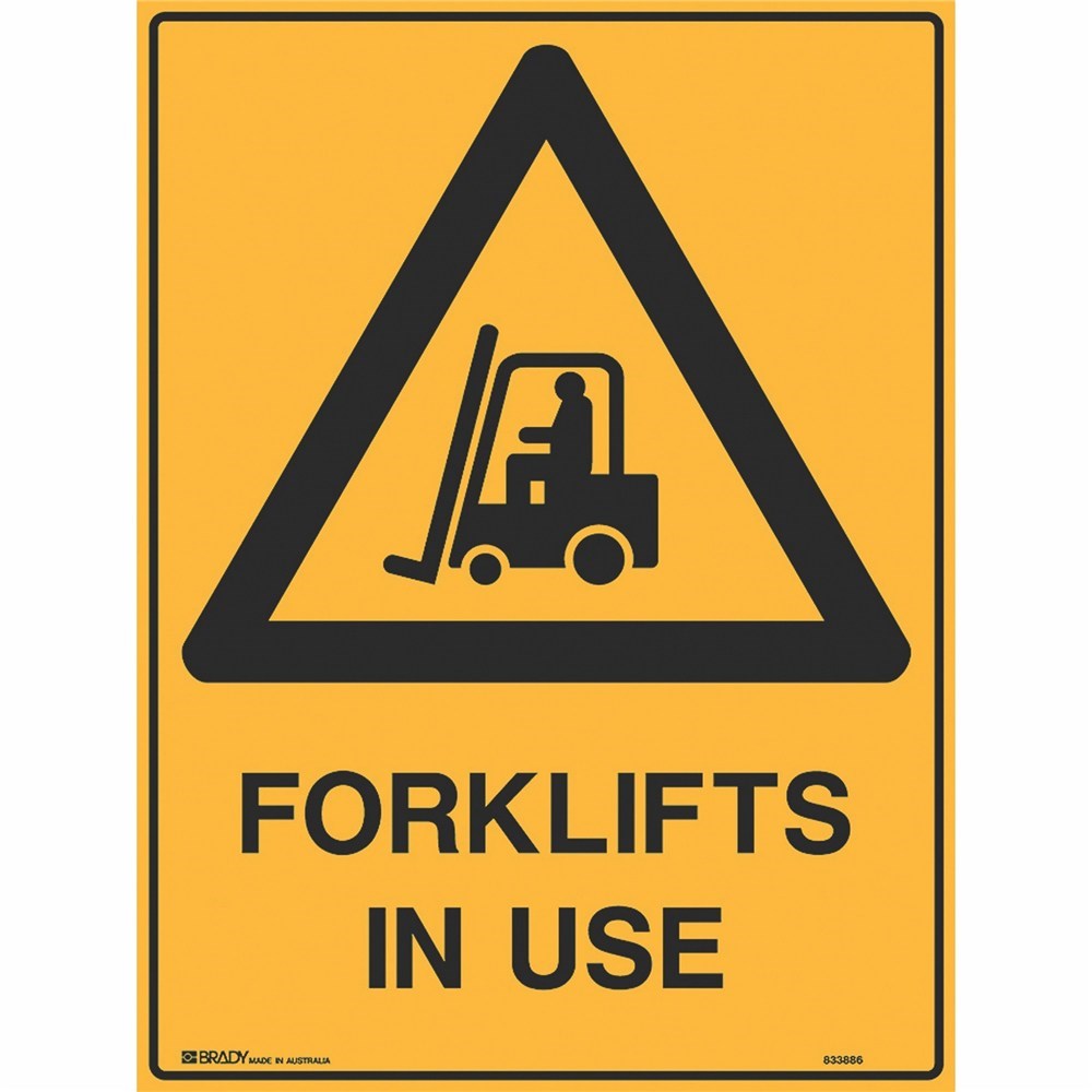 Brady Warning Sign Forklifts In Use 450W x 600mmH Metal Yellow And Black