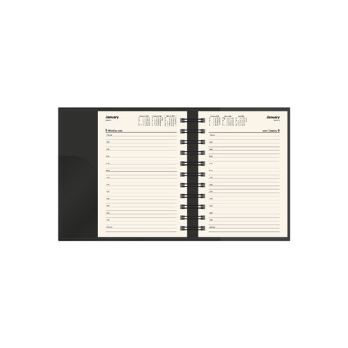 • Printed on a subtle cream paper, each dated page layout features a six-month to opening calendar, week numbers, Julian days, as well as both national and international public holidays.