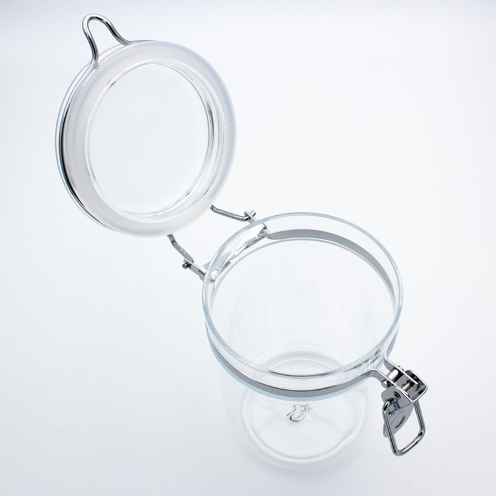 • Air-tight lid with chrome clip.