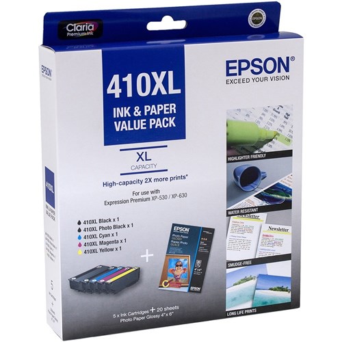 • Epson 410XL Claria Premium Ink Cartridge High Yield Value Pack Of 5 Assorted Colours