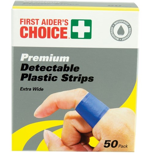 First Aider's Choice Premium Detectable Adhesive Strips Extra Wide Blue Box Of 50