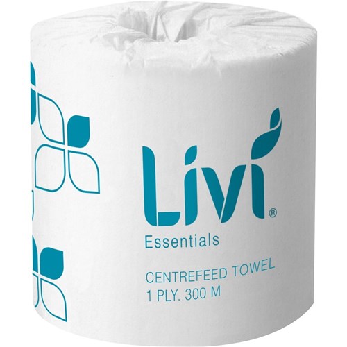 Livi Essentials Hand Towel Centrefeed Roll 1 Ply 300m Box Of 4