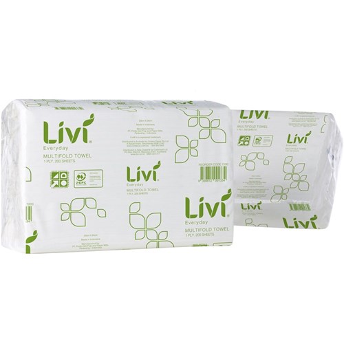 Livi Everyday Hand Towel Multifold 1 Ply 200 Sheets Box Of 20