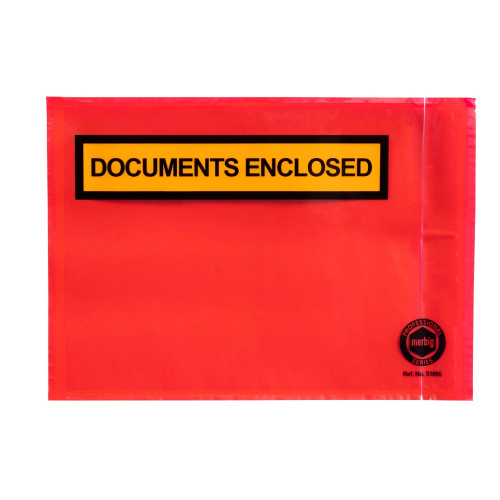 • Yellow and black print \"documents enclosed\".