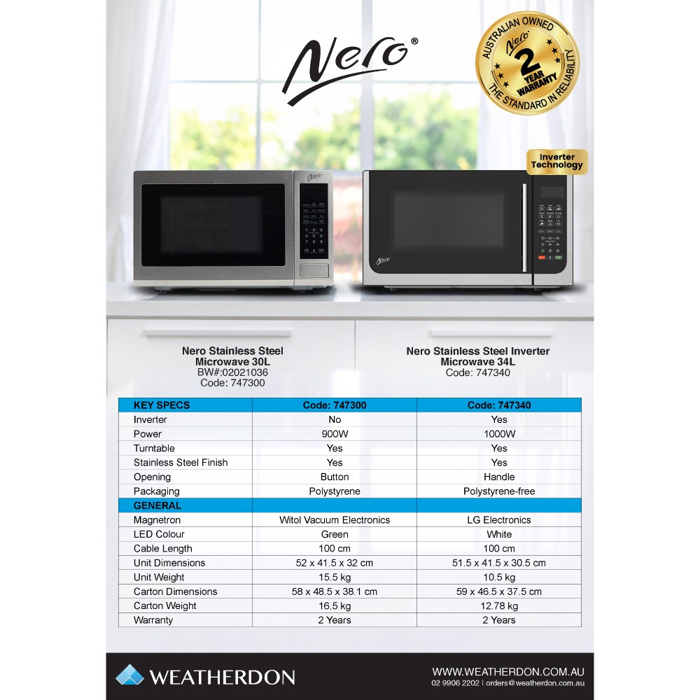 Nero Microwave 34 Litres Stainless Steel
