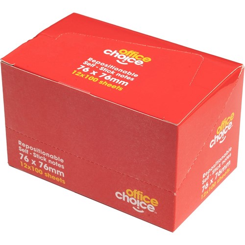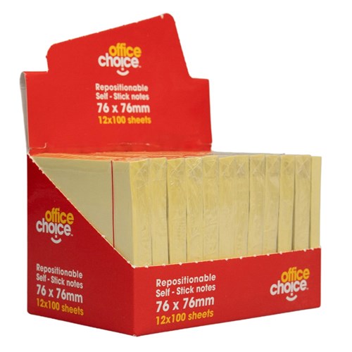 Office Choice Repositionable Sticky Notes 100 Sheets Yellow 76 x 76mm Pack of 12