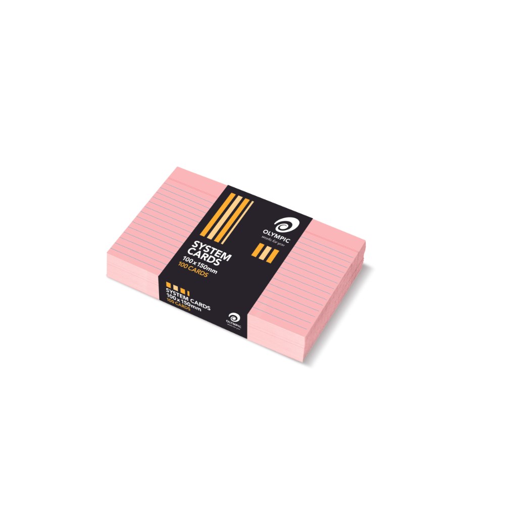 Olympic System Cards 100 x 150mm Ruled Pink Pack Of 100