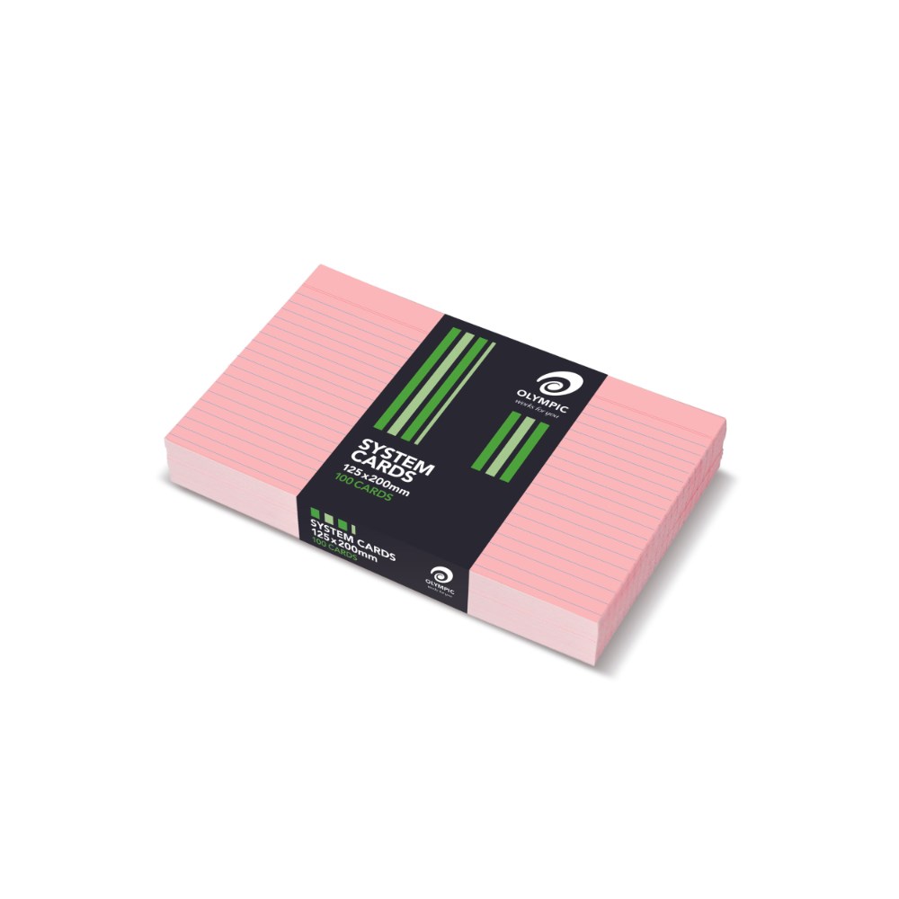 Olympic System Cards 125 x 200mm Ruled Pink Pack Of 100