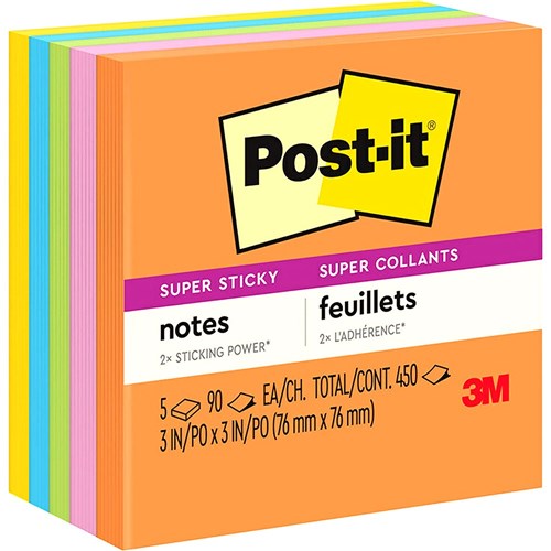 Post-It 654-5SSUC Super Sticky Notes 76mmx76mm Energy Boost Pack of 5