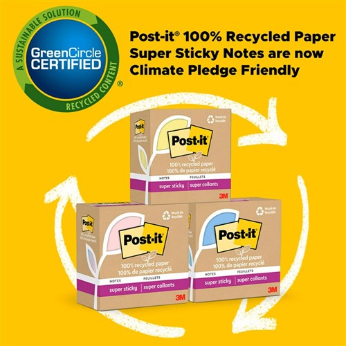 Post-It 654R-5SST Super Sticky Notes Recycled 76mm x 76mm Oasis Pack Of 5