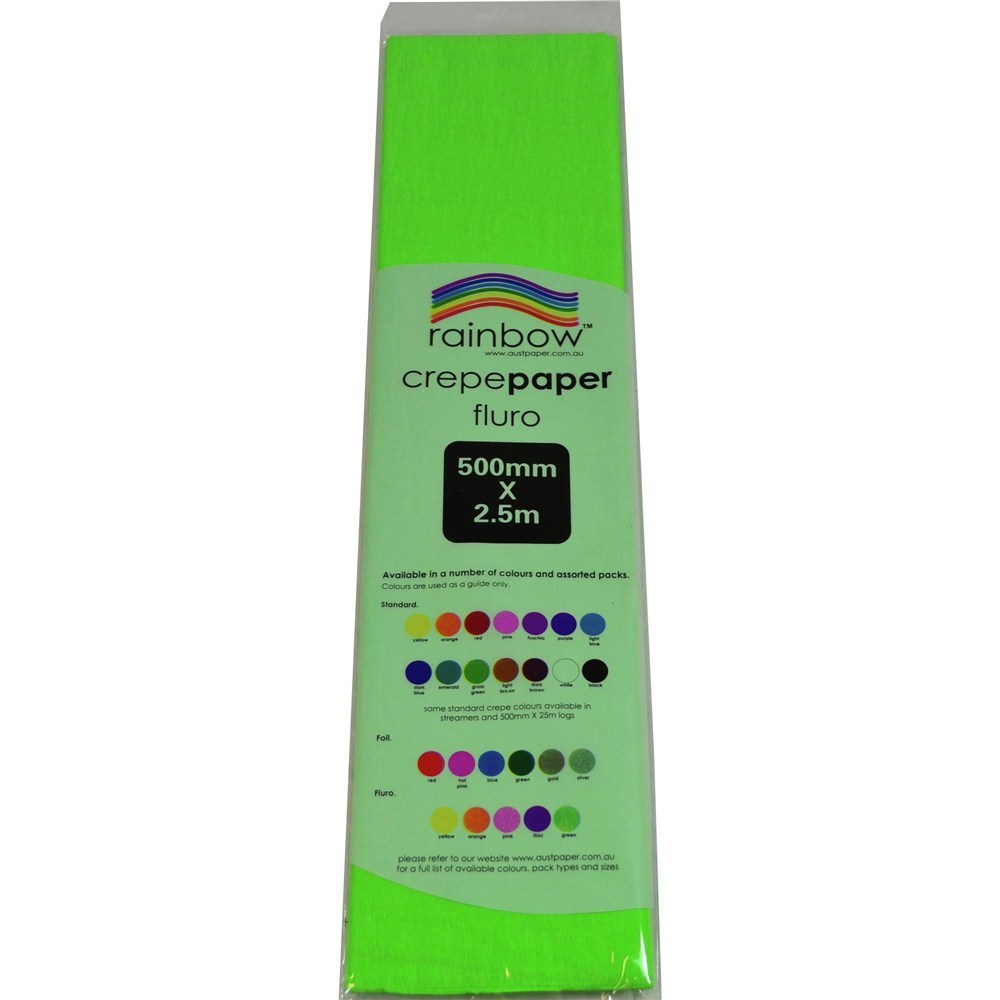 Rainbow Fluro Crepe Paper 500mm x 2.5m Green