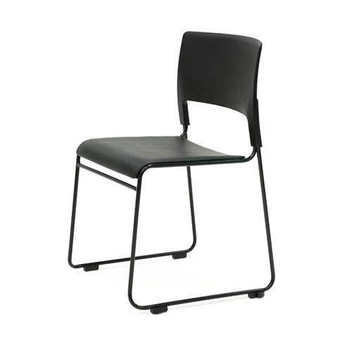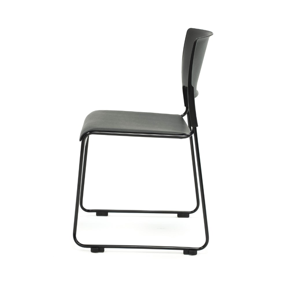 • Composition: Black polypropylene seat and black rest. Seat Upholstered black vinyl. Solis steel sled base frame finished in black powder coat.