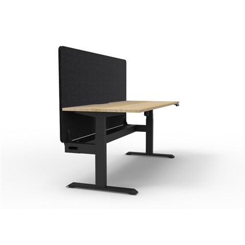 • Electric height adjustable single sided workstation with Natural Oak top and Black Satin frame, Black Eco screen and cable tray.