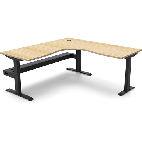 Rapidline Boost Static Corner Workstation + Tray 1800/1800W x 750D x 730mmH Oak/Black