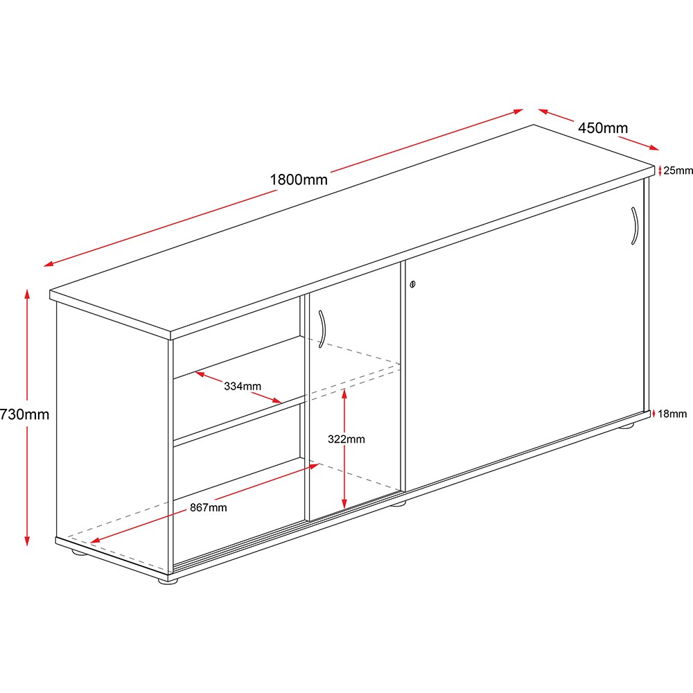 Rapidline Credenza Sliding Doors 1800W x 450D x 730mmH White And Ironstone