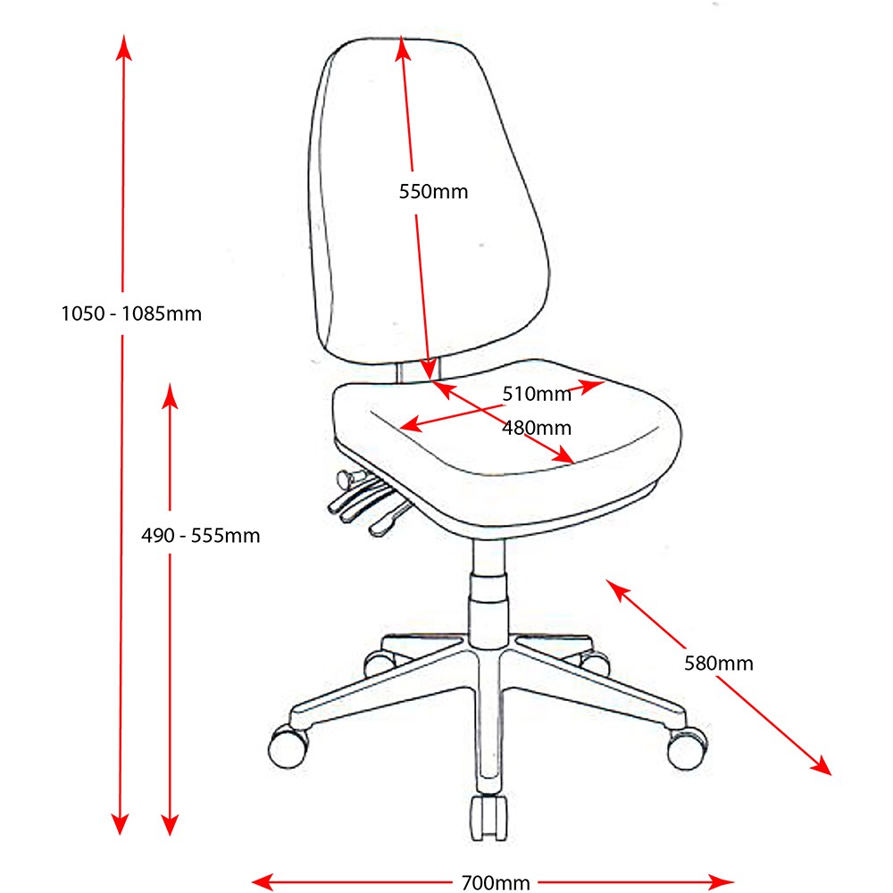 • Chair Dimensions: Seat 510W x 480D x Back 550H x Seat 490-555mmH.