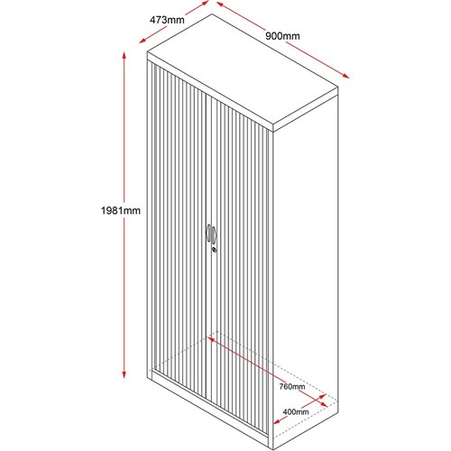 • Rapidline Go Tambour Door Cupboard No Shelves Included 900W x 473D x 1981mmH Black