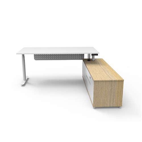 Rapidline Halo+ Executive Desk + RHS Cabinet + Panel 2020W x 1936D x 620-1270mmH White/Wht