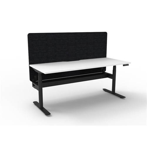 Rapidline Halo+ Single Sided Workstation + Black Eco Screen +Tray 1200Wx620-1270mmH Wht/Bl