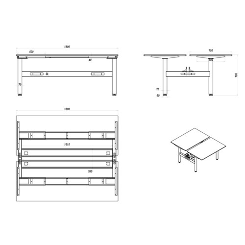 • Per User Dimensions: 1800W x 750D x 730mmH.