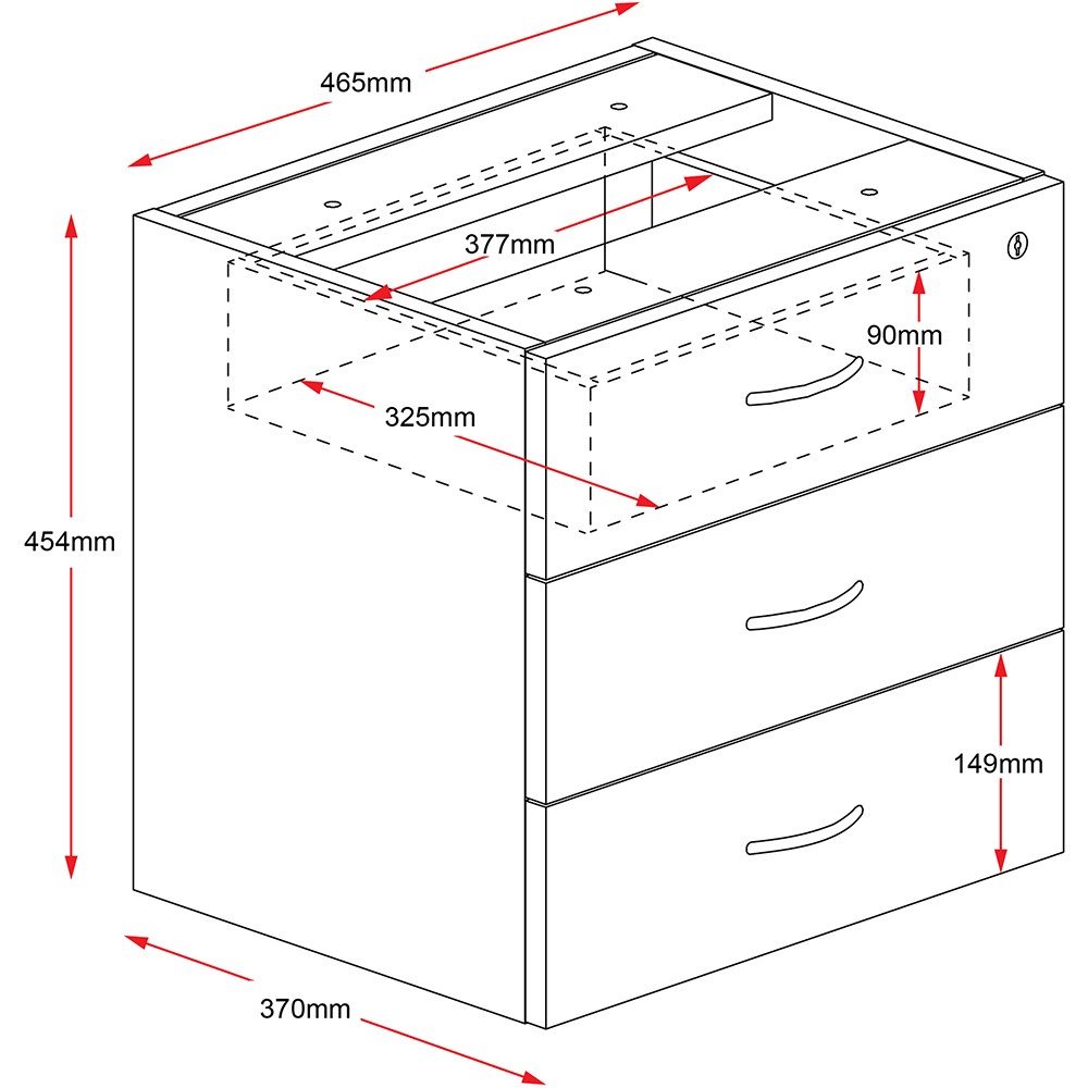 Rapidline Rapid Worker Fixed Desk Return Pedestal 3 Drawer 465W x 370D x 454mmH Ironstone