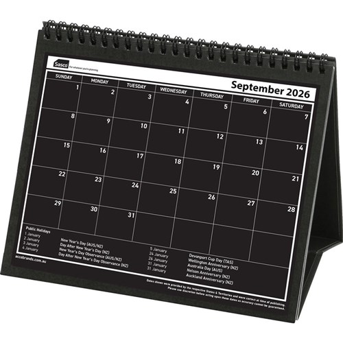 Sasco Desk Calendar 210 x 180mm Month To View Black And White