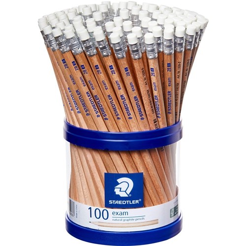 Staedtler Natural Exam Eraser Tip Graphite Pencils 2B Cup of 100