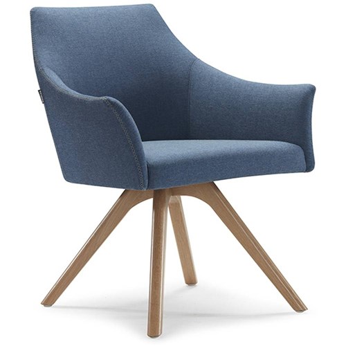 Tulip Tub Chair Timber Base Blue Fabric Seat