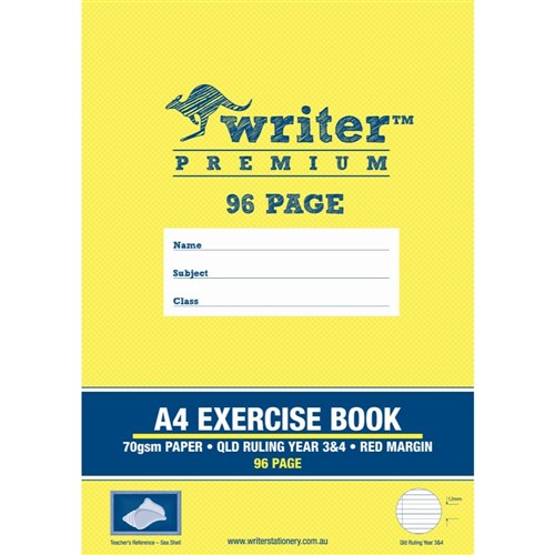 Writer Premium Exercise Book A4 QLD Year 3/4 96 Page 12mm Ruled With Margin Seashell