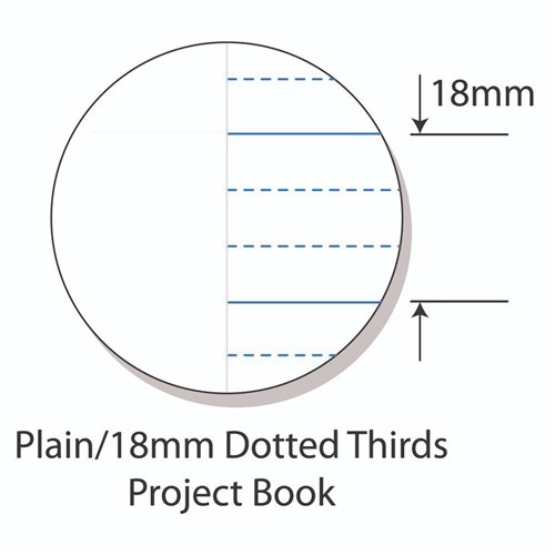 • Feature heavy duty covers, high quality white 70gsm paper with blue dotted thirds ruled lines and a red margin.